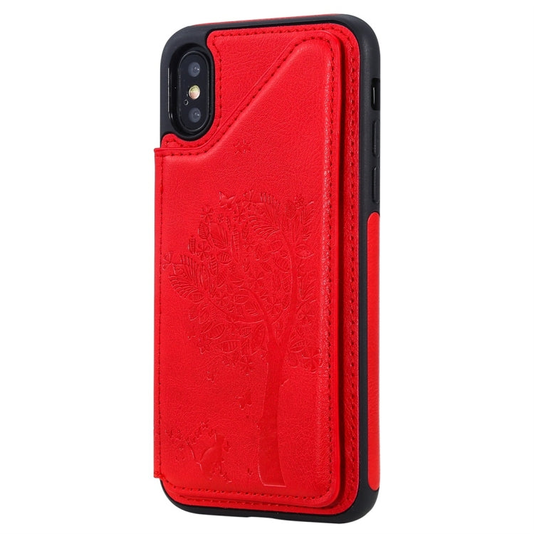Estuche protector para iPhone Xs Cat Tree con patrón en relieve, a prueba de golpes, ranuras para tarjetas y marco de fotos (Rojo)