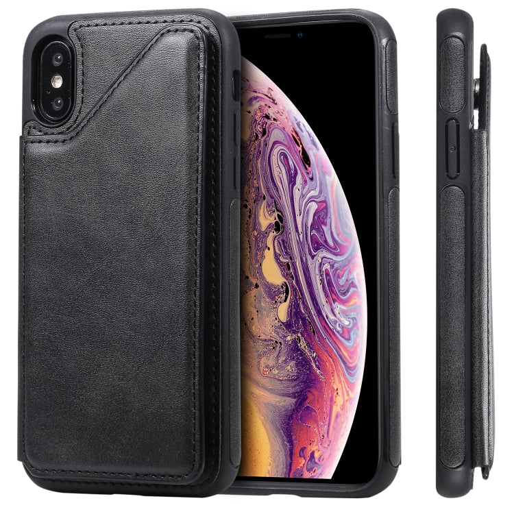 Funda Protectora iPhone Xs Textura Pantorrilla Soporte Ranuras Tarjetas (Negro)