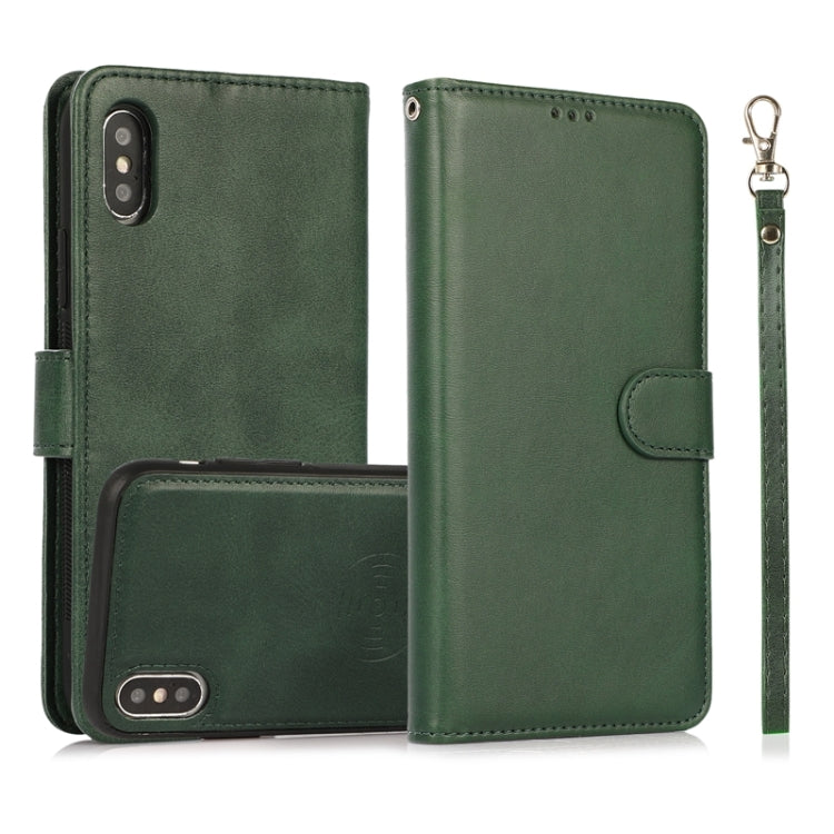 Funda para iPhone Xs Max Calf Texture 2 en 1 Cubierta Trasera Magnética Desmontable con Tapa Horizontal y Soporte (Verde)