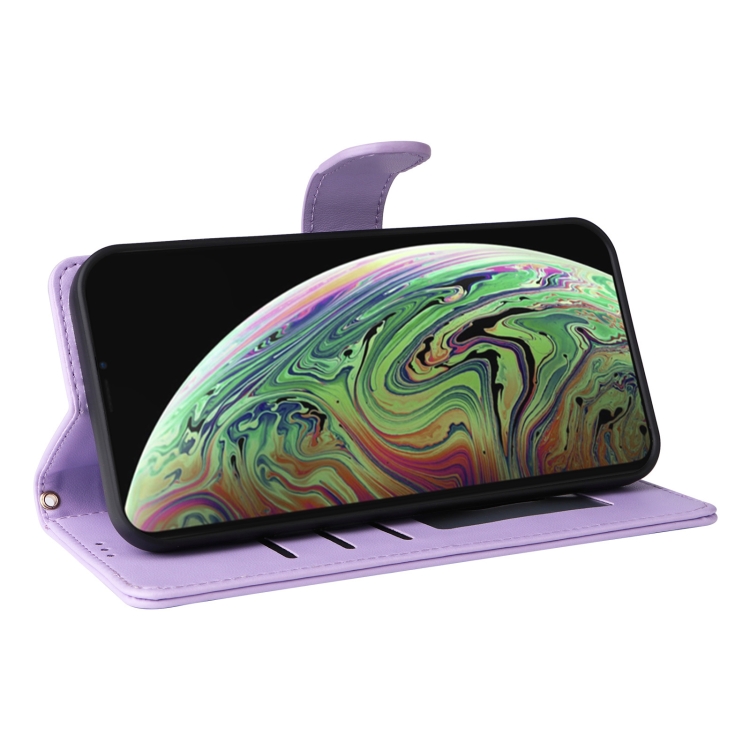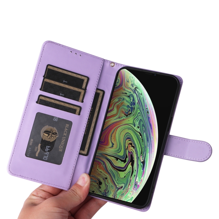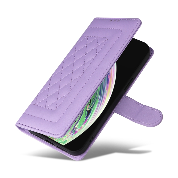 Funda para iPhone Xs Max Diamond Lattice de Cuero con Tapa (Púrpura Claro)