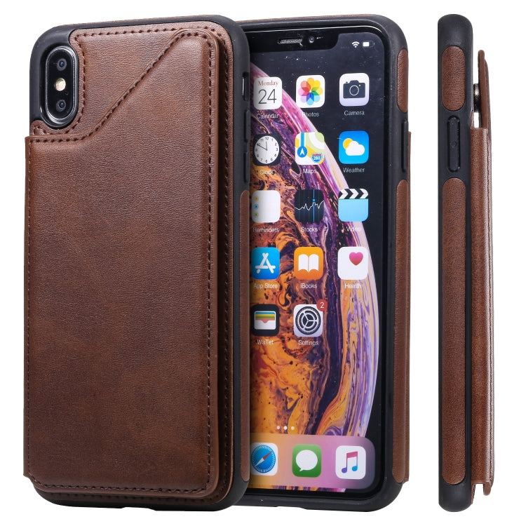 Estuche Protector para iPhone Xs Max Textura Pantorrilla Soporte Ranuras Tarjetas (Café)