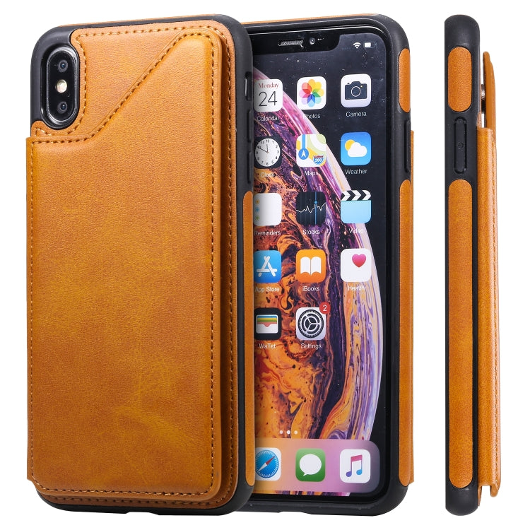 Estuche Protector para iPhone Xs Max Textura de Pantorrilla a Prueba de Golpes con Soporte y Ranuras para Tarjetas (Marrón)