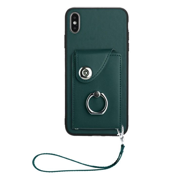 Funda para Teléfono iPhone Xs Max de PU con Soporte para Anillo y Bolsa para Tarjeta con Cordón (Verde)
