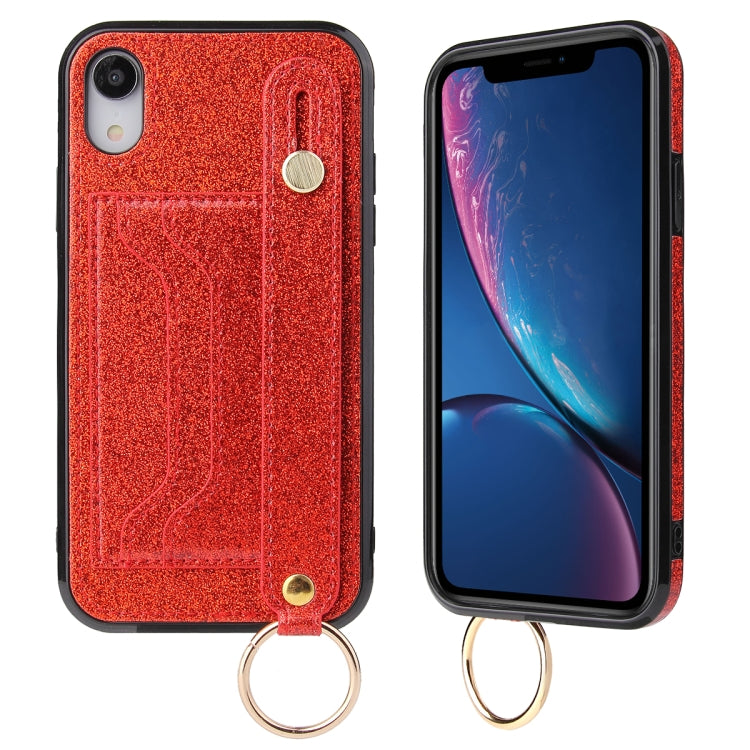 Estuche protector para iPhone Xs Max PU Glitter Powder + TPU con soporte y ranuras para tarjetas y correa (Rojo)
