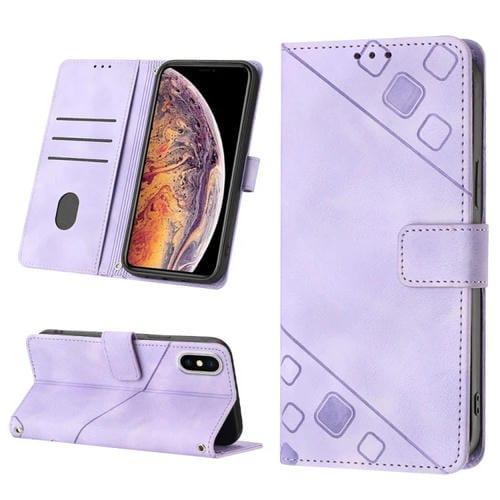 Estuche para Teléfono iPhone Xs Max Skin-Feel Cuero En Relieve (Púrpura Claro)