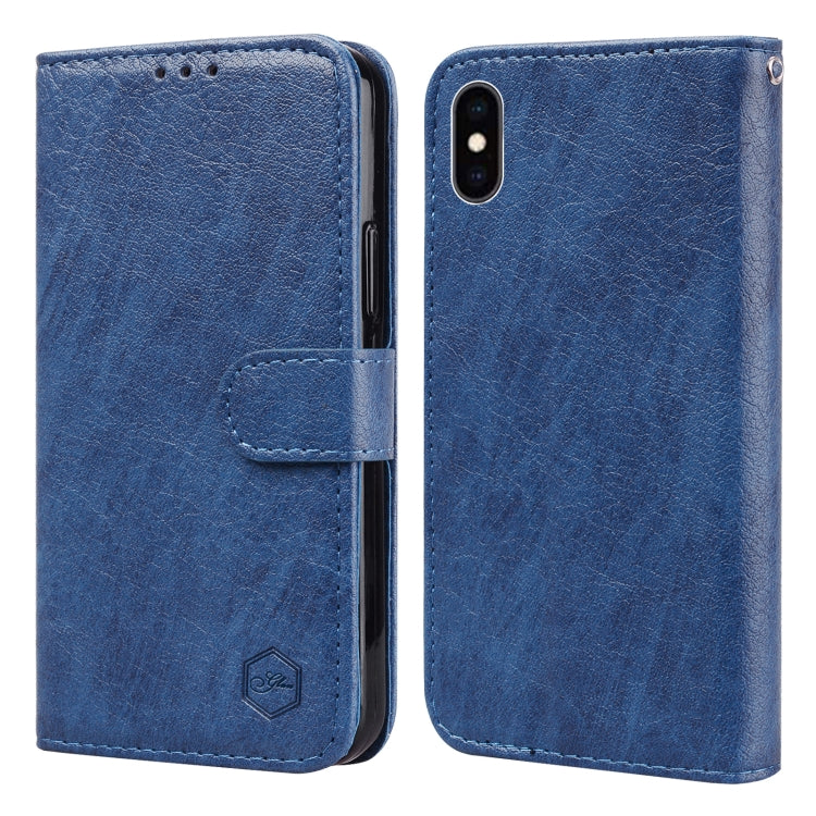Funda para Teléfono iPhone Xs Max Skin Feeling Oil Textura de Cuero Pu + TPU (Azul Oscuro)