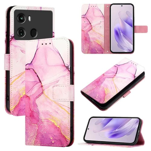 Funda para Itel P40 Pt003 de Cuero con Tapa y Patrón de Mármol (Rosa, Morado y Dorado)