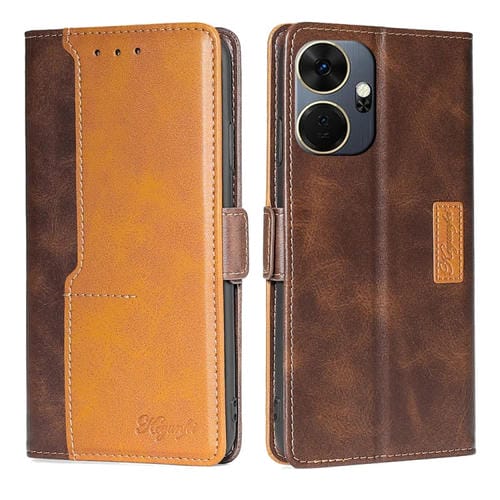 Funda de Cuero para Itel P55 + 4G con Hebilla Lateral y Color En Contraste (Marrón Oscuro)