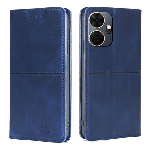 Funda de Cuero Magnética para Itel P55 + 4G con Textura de Vaca (Azul)