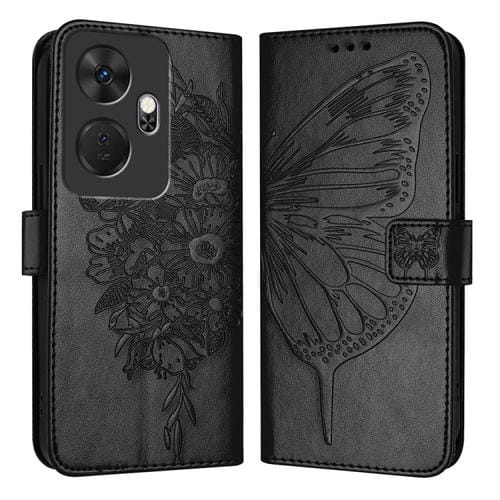 Funda de Cuero para Itel P55 con Mariposa en Relieve (Negro)