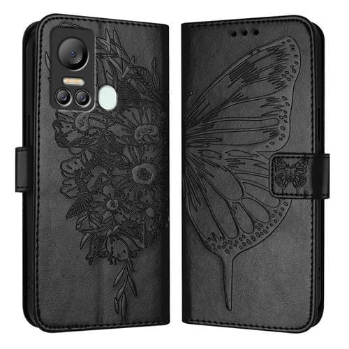 Funda de Cuero para Itel S18 y Vision 5 con Mariposa en Relieve (Negro)