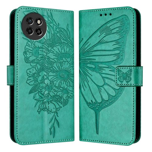 Funda de Cuero para Itel S23 con Mariposa en Relieve (Verde)