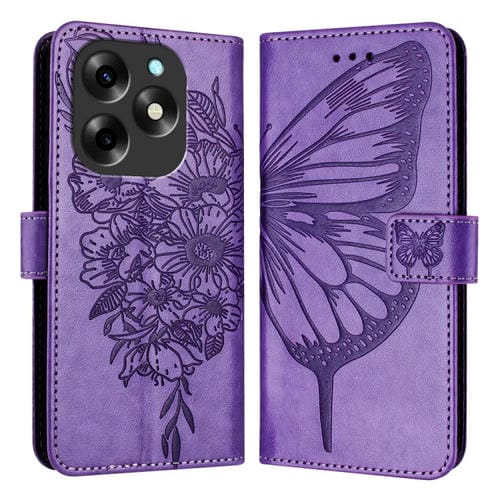Funda de Cuero para Itel S23 con Mariposa en Relieve (Púrpura Claro)