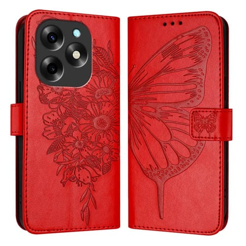 Funda de Cuero para Itel S23 con Mariposa en Relieve (Rojo)