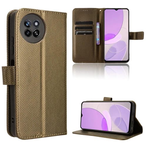Funda de Cuero para Itel S23 S665L con Textura de Diamante (Marrón)