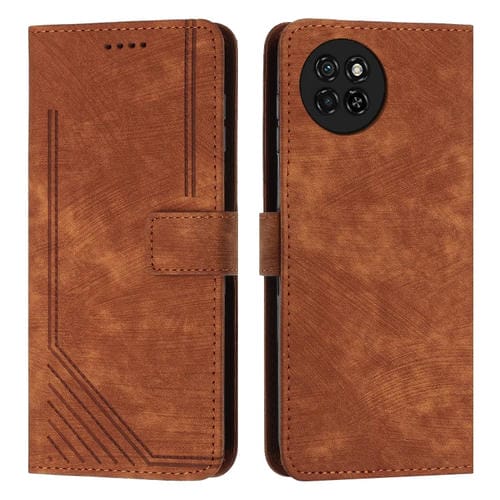 Funda de Cuero para Itel S23 Skin Feel con Patrón de Rayas y Cordón (Marrón)