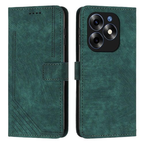 Funda de Cuero Skin Feel para Itel S23 con Patrón de Rayas y Cordón (Verde)