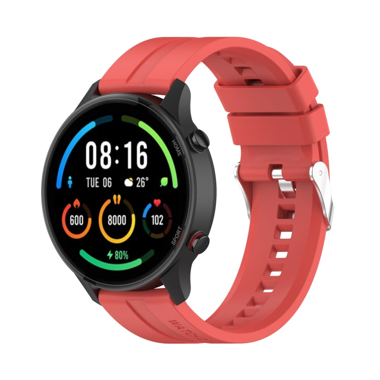 Para la banda de reloj de silicona de color Xiaomi Watch Sport con hebilla de acero plateado (rojo)