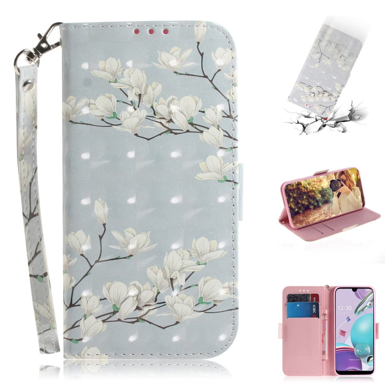 Funda de Cuero para LG K31 con Tapa Horizontal, Dibujo 3D, Soporte, Ranuras y Cordón (Magnolia)
