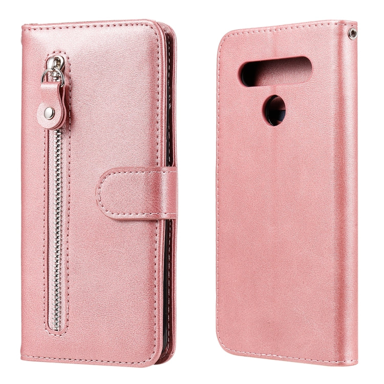Estuche de Cuero para LG K41S K51S con Tapa Horizontal, Cremallera, Soporte, Ranuras para Tarjetas y Billetera (Oro Rosa)