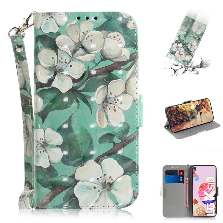 Funda de Cuero Abatible para LG K41S / K51S con Dibujo 3D, Soporte, Ranuras y Cordón (Flor de Acuarela)