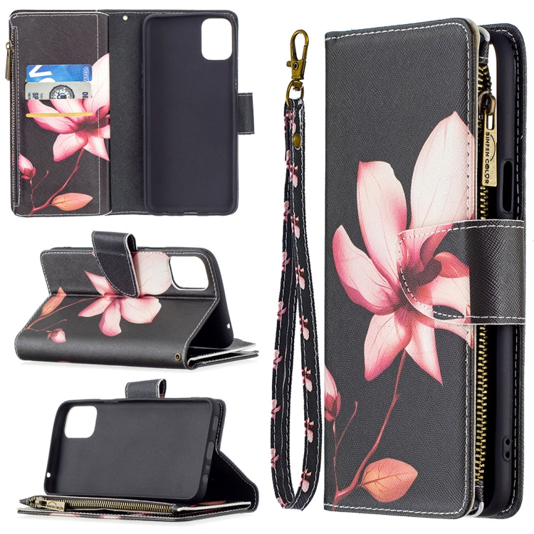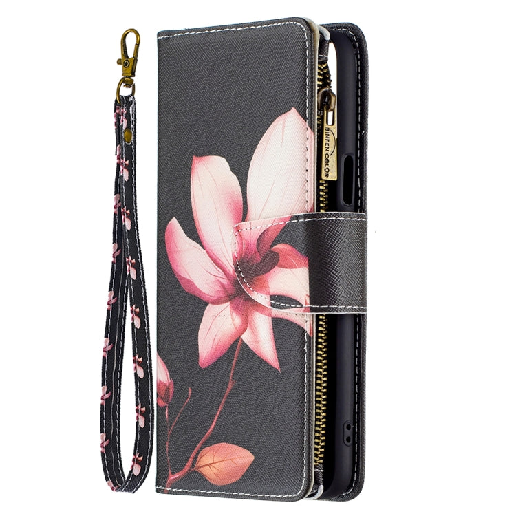 Funda para LG K42 con Cremallera Horizontal Flip, Soporte, Ranuras para Tarjetas y Billetera (Lotus)