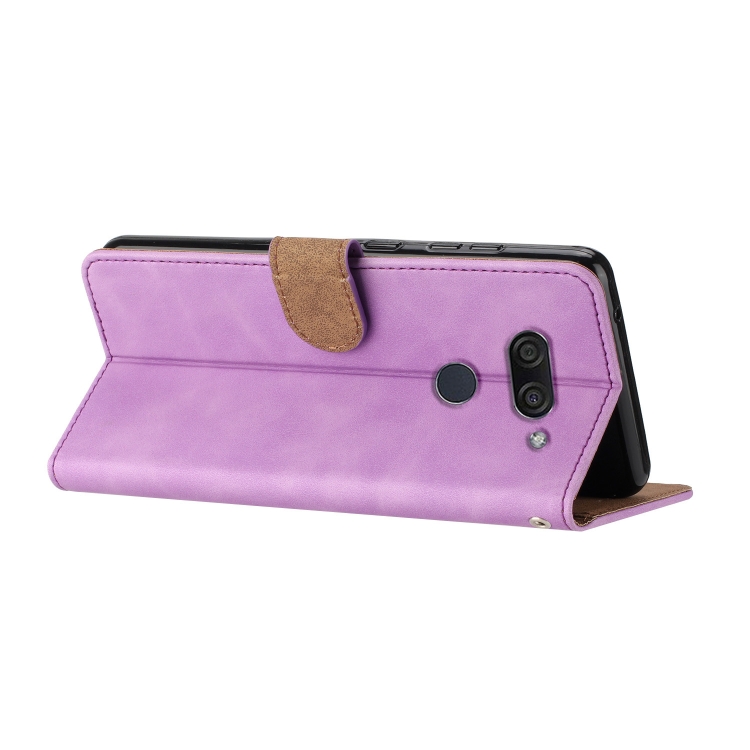 Funda para LG K50 Seven Butterflies Caja de Teléfono Cuero En Relieve (Púrpura)