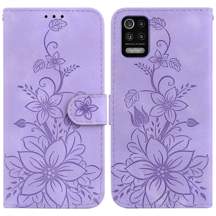Estuche para Teléfono LG K52 K62 Q52 Cuero con Relieve de Lirio (Púrpura)