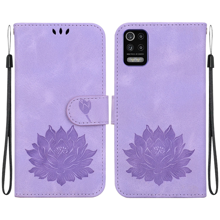 Funda de Cuero para LG K52 / K62 / Q52 con Relieve de Loto (Púrpura)