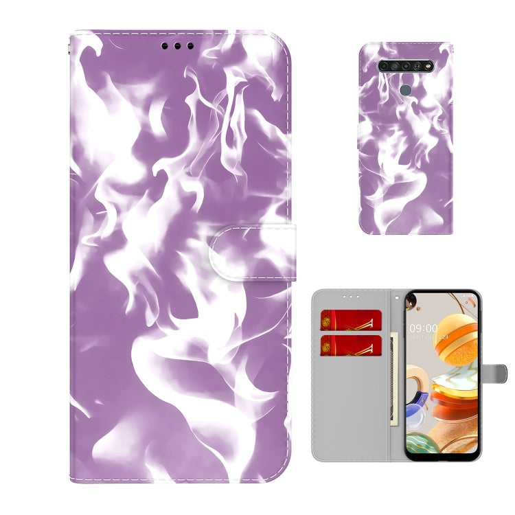 Funda de Cuero LG K61 Cloud Fog Stattern Horizontal Flip con Soporte y Ranura para Tarjeta y Billetera (Púrpura)