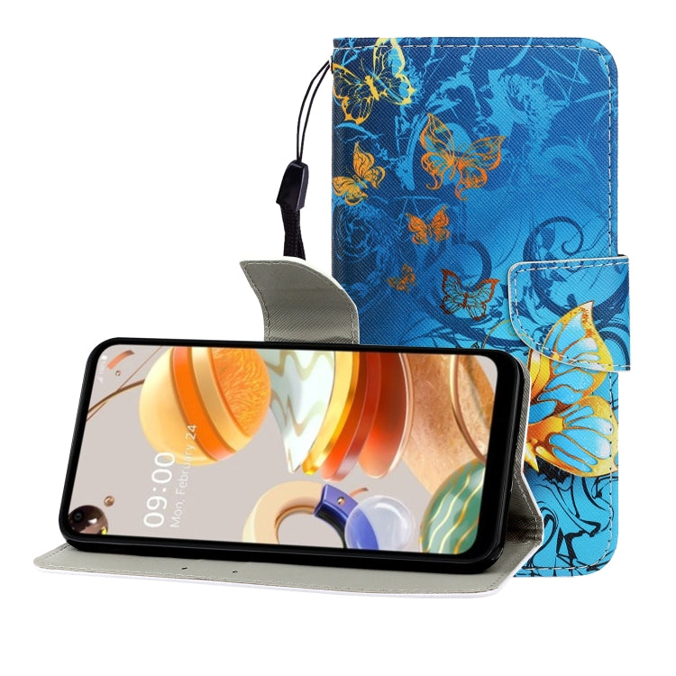 Funda de Cuero Abatible Horizontal para LG K61 con Soporte, Ranura para Tarjeta y Billetera (Mariposa de Jade)