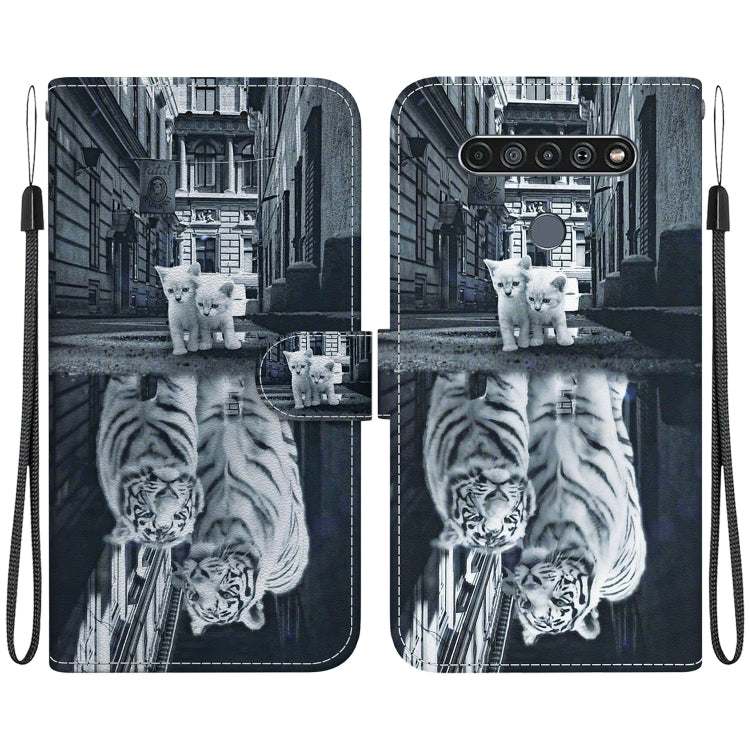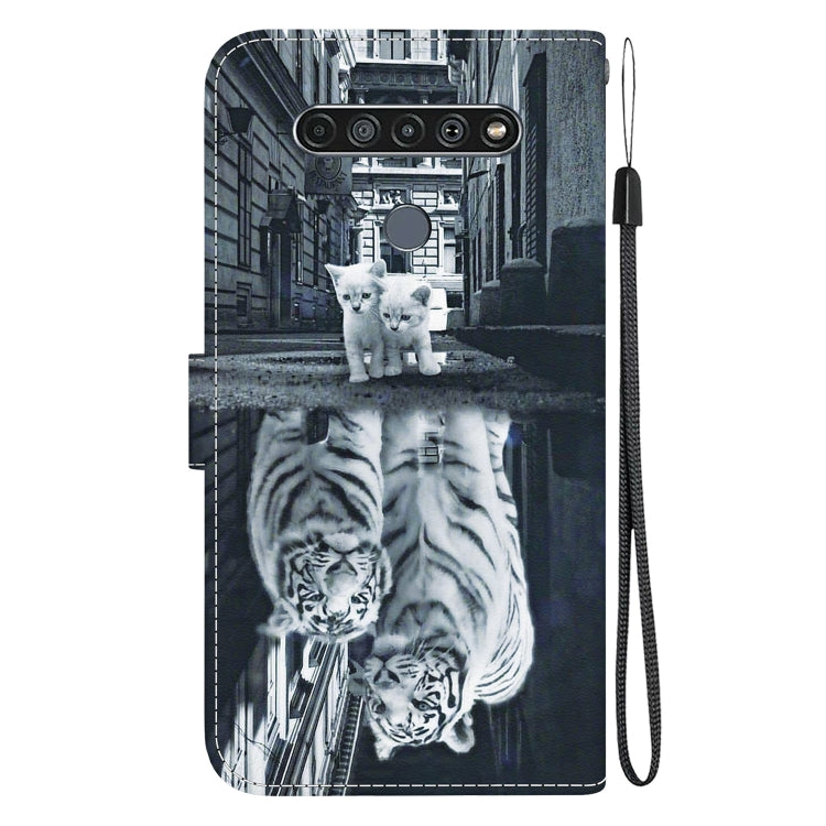 Funda de Cuero para LG K61 con Dibujo Coloreado y Textura de Cristal (Reflejo de Tigre Gato)