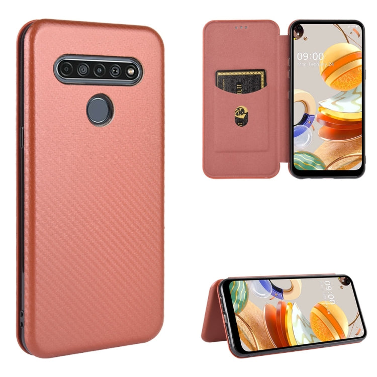 Funda de Cuero para LG K61 Q61 con Tapa Magnética Horizontal y Ranura para Tarjeta (Marrón)