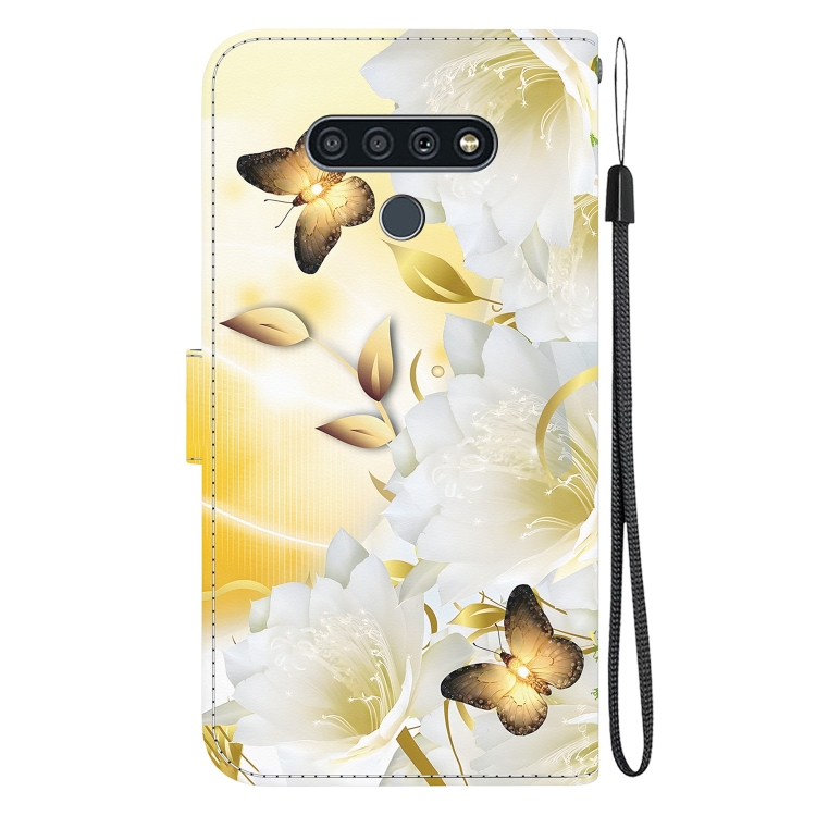 Estuche de Cuero para LG Stylo 6 / K71 con Dibujo Coloreado y Textura de Cristal (Epiphyllum Mariposa Dorada)