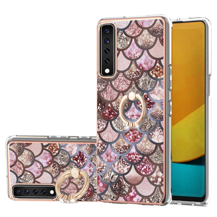 Funda TPU LG Stylo 7 4G con Patrón de Galvanoplastia, Soporte de Anillo y Diamantes (Escamas Rosas)