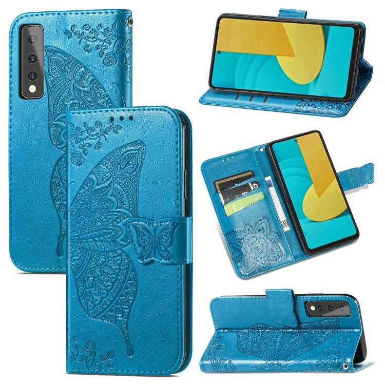 Funda de Cuero Horizontal Flip para LG Stylo 7 Butterfly Love Flowe con Soporte, Tarjeta Slot, Wallet y Lanyard (Azul)