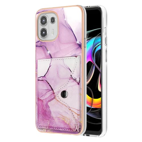 Estuche para Motorola Edge 20 Lite con Ranura para Tarjeta y Patrón Mármol (Oro Rosa Púrpura)