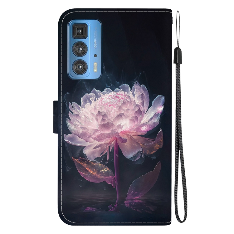 Funda de Cuero para Motorola Edge 20 Pro con Dibujo Coloreado y Textura de Cristal (Peonía Púrpura)