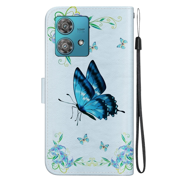Estuche para Motorola Edge 40 Neo de Cuero con Dibujo Coloreado y Textura de Cristal (Pensamientos Azules)