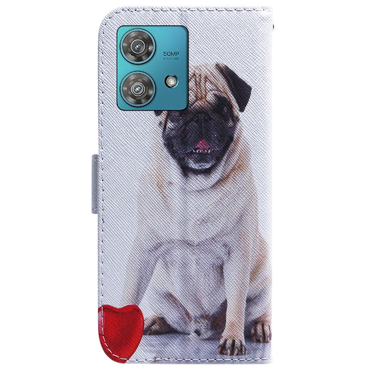 Funda de Cuero para Motorola Edge 40 Neo con Tapa y Dibujo Coloreado (Pug)