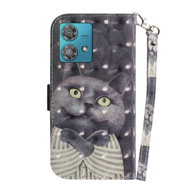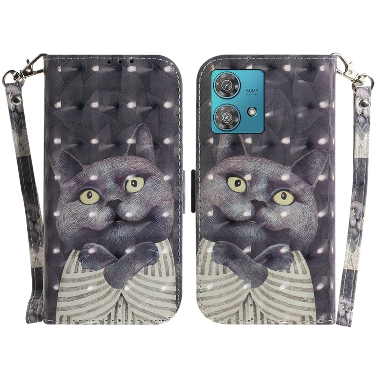 Funda de Cuero para Motorola Edge 40 Neo con Tapa Horizontal y Diseño 3D (Hug Cat)