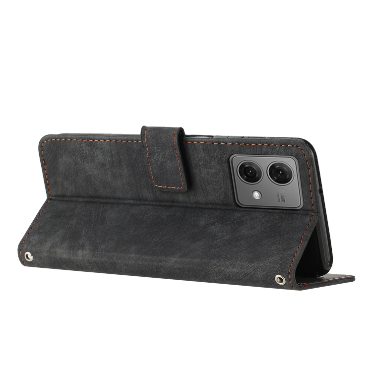 Funda de Cuero Skin Feel para Motorola Edge 40 Neo con Patrón de Rayas y Cordón (Negro)