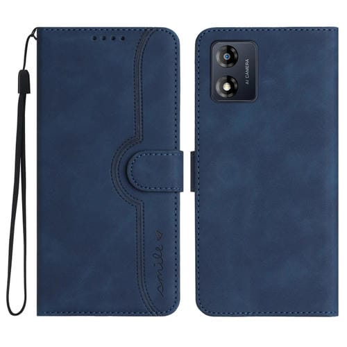 Funda de Cuero para Motorola Moto E13 con Sensación de Piel y Patrón de Corazón (Azul Real)