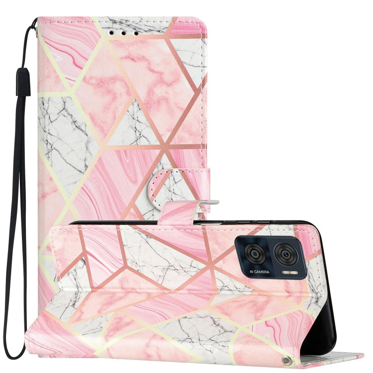 Estuche para Motorola Moto E22 de Cuero con Dibujo Coloreado Mármol Rosa
