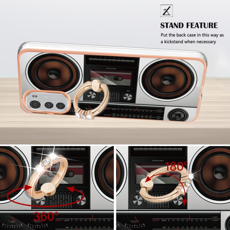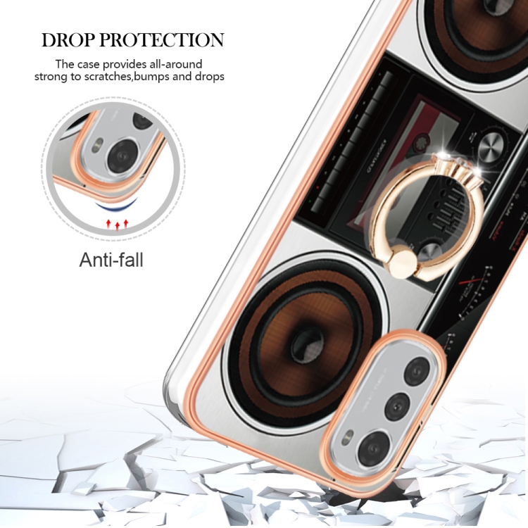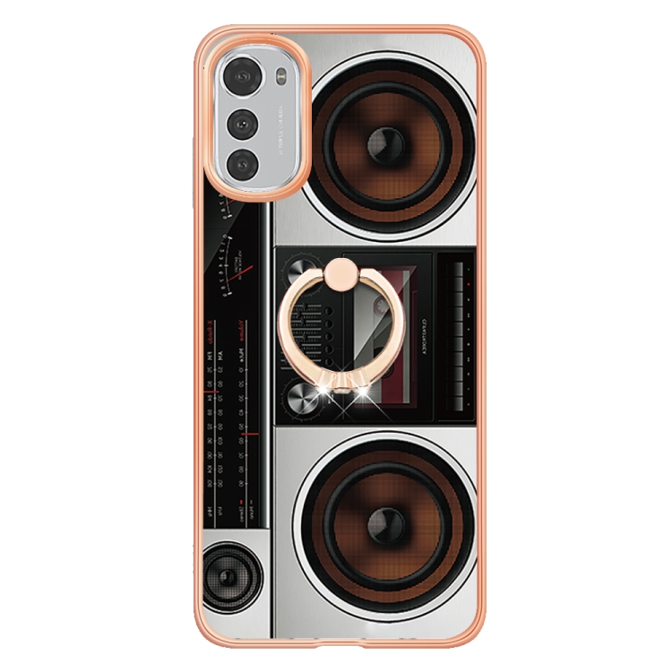 Estuche para Motorola Moto E32 4G y E32S Imd Doble Cara con Galvanoplastia y Soporte para Anillo (Radio Retro)