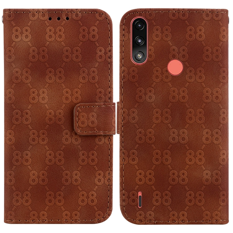 Funda de Cuero para Motorola Moto E7 Power y E7I Power con Relieve Doble Forma 8 (Marrón)
