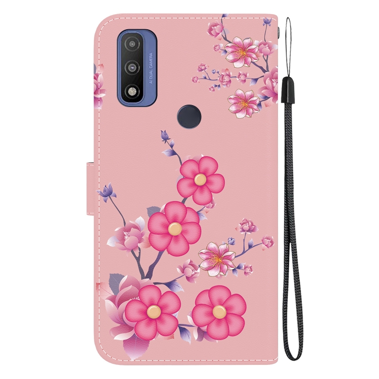 Funda para Motorola Moto G de Cuero con Dibujo Coloreado y Textura de Cristal Puro (Flores de Cerezo)