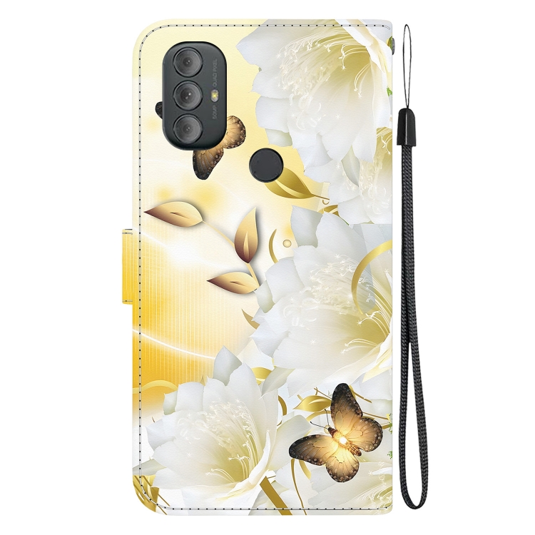 Estuche de Cuero para Motorola Moto G Power 2022 con Dibujo Epiphyllum de Mariposa Dorada y Textura de Cristal