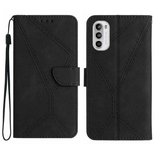 Funda de Cuero para Motorola Moto G Stylus 4G (2022) con Costuras en Relieve (Negro)