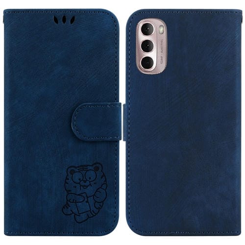 Funda para Motorola Moto G Stylus 4G 2022 de Cuero con Relieve Little Tiger (Azul Oscuro)